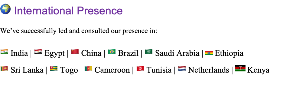 h. Delivered results in Africa, Middle East, Asia & Europe